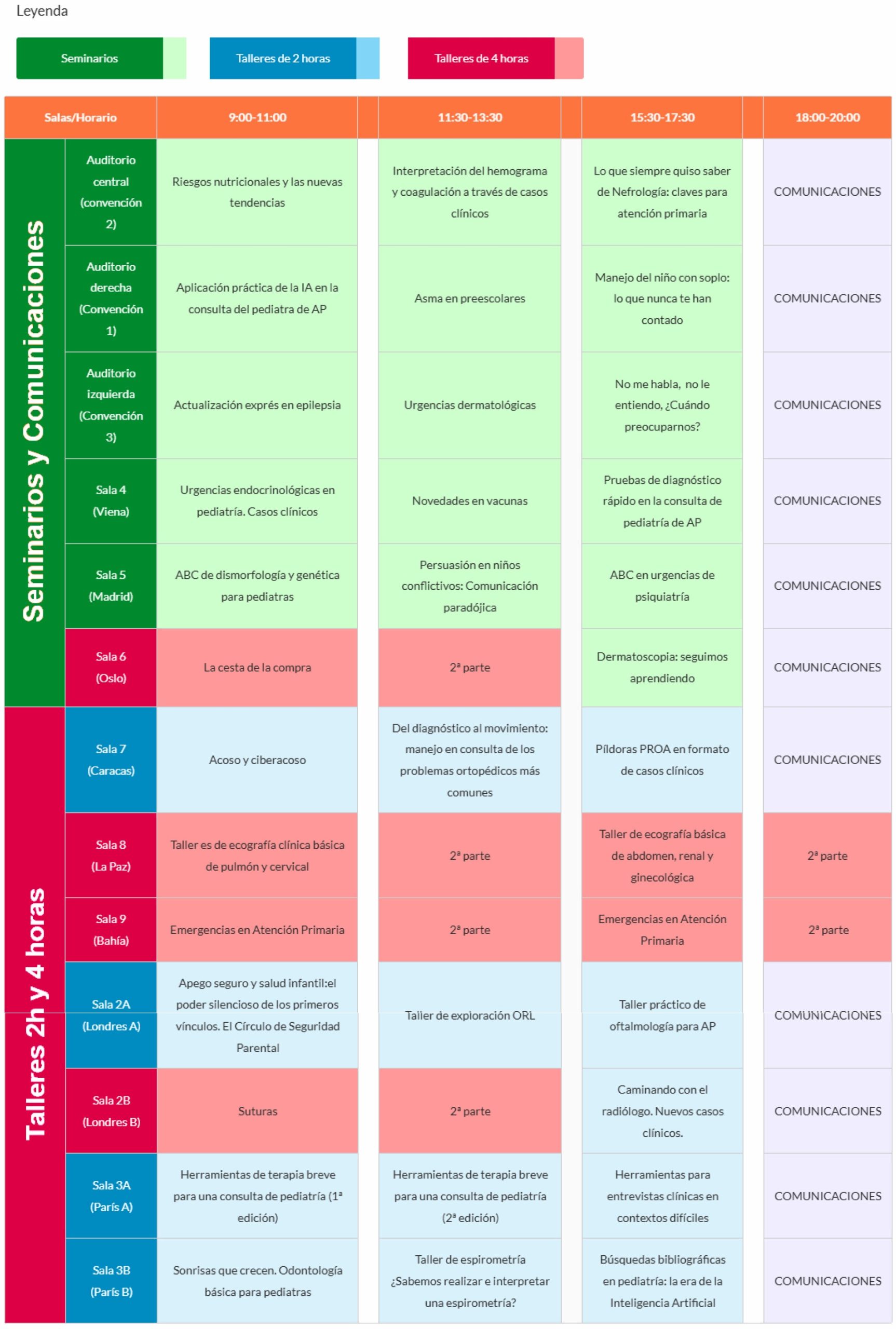 | Seminarios | Talleres de 2 horas | Talleres de 4 horas |